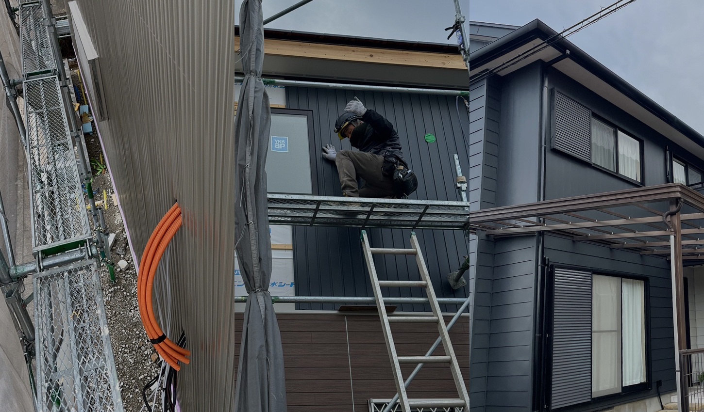 足場を組んでの壁面リフォーム